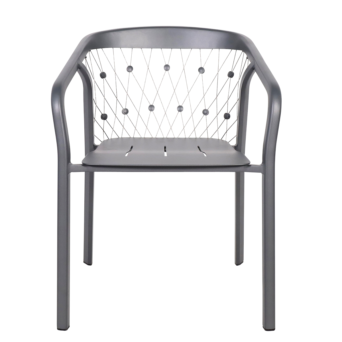 Ce fauteuil de jardin empilable incarne un design contemporain et pratique. Conçu en aluminium gris espace il allie légèreté et robustesse, tandis que son tressage en câble inox 316 et ses boutons décoratifs ajoutent une touche d’élégance et d’originalité. Facile à empiler pour un rangement optimisé, ce fauteuil est idéal pour des espaces extérieurs, combinant style, confort et fonctionnalité pour des moments conviviaux en plein air.